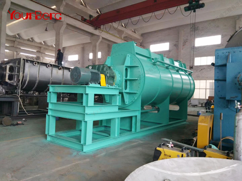 空心軸上密集排列著楔型中空漿葉,熱介質(zhì)經(jīng)空心軸流經(jīng)漿葉。單位有效容積內(nèi)傳熱面積很大,熱介質(zhì)溫度從-40℃到320℃,可以是水蒸汽,也可以是液體型:如熱水、導(dǎo)熱油等。間接傳導(dǎo)加熱,沒有攜帶空氣帶走熱量,熱量均用來加熱物料。熱量損失僅為通過器體保溫層向環(huán)境的散熱。楔型漿葉傳熱面具有自清潔功能。物料顆粒與楔型面的相對運動產(chǎn)生洗刷作用,能夠洗刷掉楔型面上附著物料,使運轉(zhuǎn)中一直保持著清潔的傳熱面。漿葉干燥機(jī)的殼體為Ω型,殼體內(nèi)一般安排二到四根空心攪拌軸。殼體有密封端蓋與上蓋,防止物料粉塵外泄而充分發(fā)揮作用。