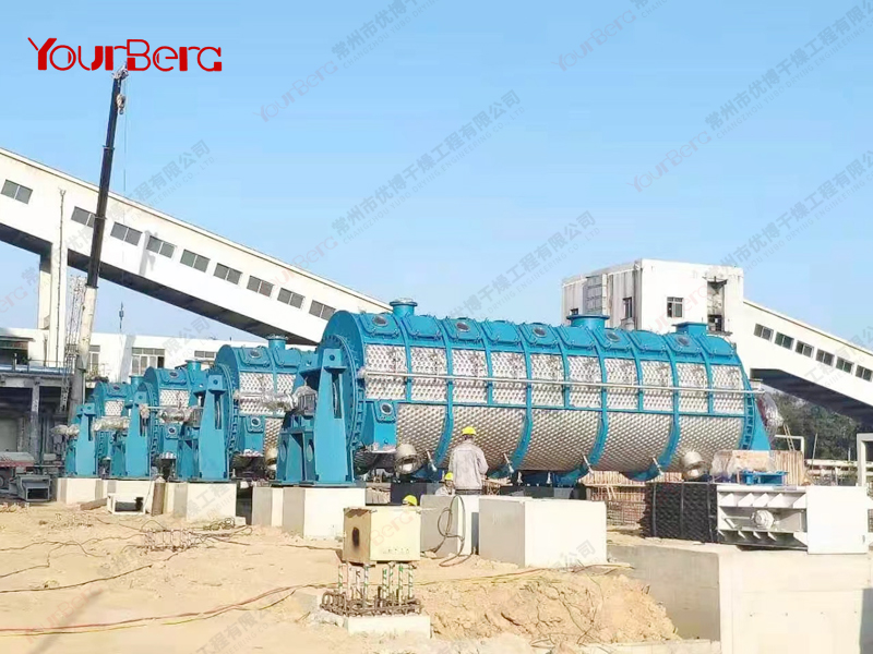 熱能利用率高,能耗低,裝料量可達(dá)筒體體積的70~80%,由于間接加熱,沒有大量攜帶空氣帶走熱量,干燥器外壁又設(shè)置保溫層,蒸發(fā)1kg水僅需1.2kg水蒸氣。