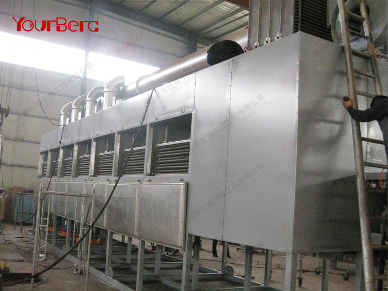 (2)多級(jí)帶式干燥機(jī):多級(jí)帶干燥實(shí)質(zhì)上是由數(shù)臺(tái)單級(jí)帶干機(jī)串聯(lián)組成,其操作原理與單級(jí)帶干機(jī)相同。