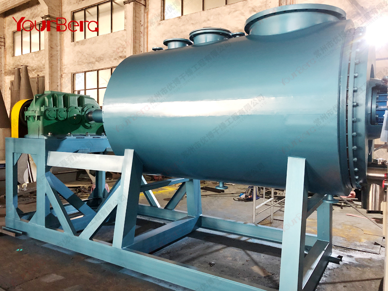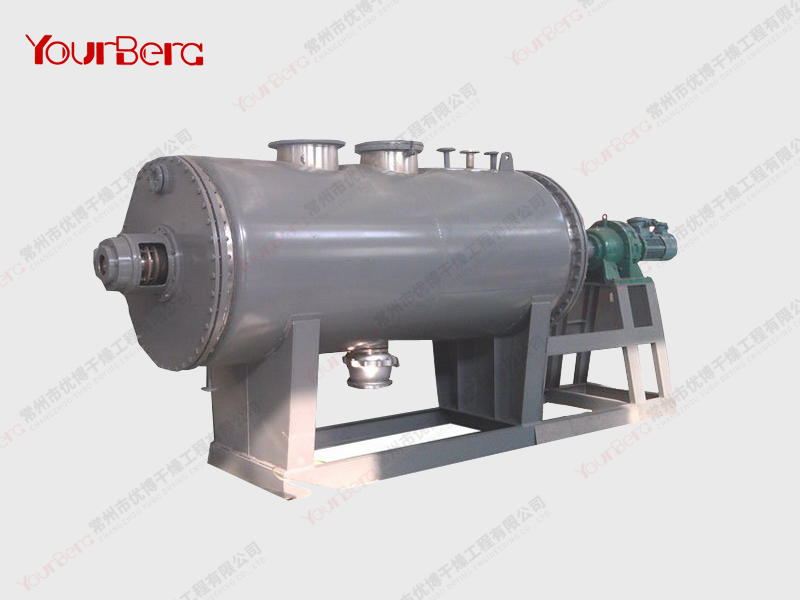 本機是一種新穎臥式間歇式真空干燥設(shè)備,濕物料經(jīng)傳導(dǎo)蒸發(fā),帶有刮板攪拌器不斷清除熱面上的物料,并在容器內(nèi)推移形成循環(huán)流,水份蒸發(fā)后由真空泵抽出。