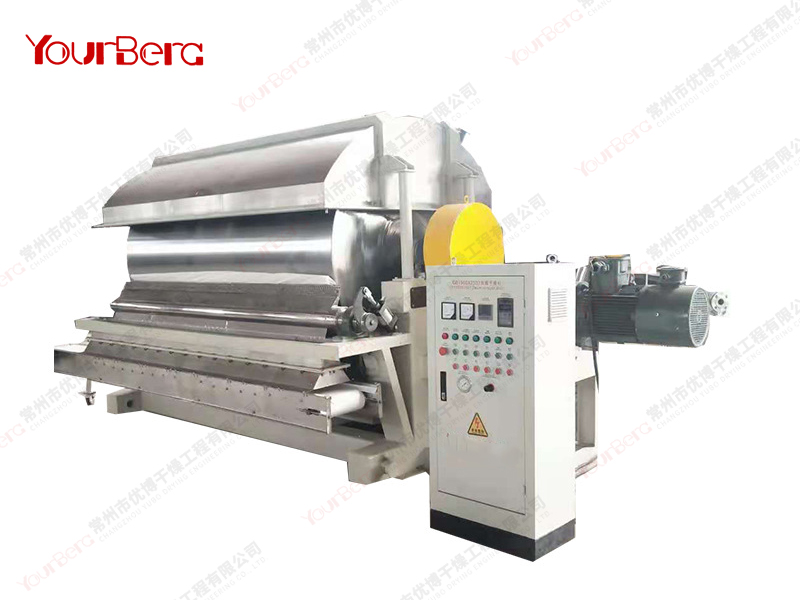 3、干燥時間短。物料的干燥周期一般只有10-300秒,在適合于熱敏性物料。若將滾筒干燥機設(shè)置在真空器中,則可在減壓條件下運行。