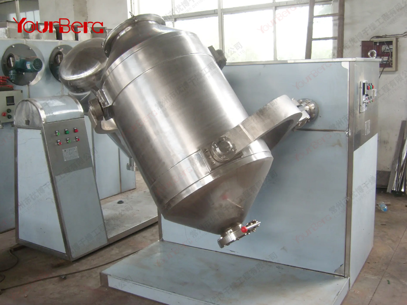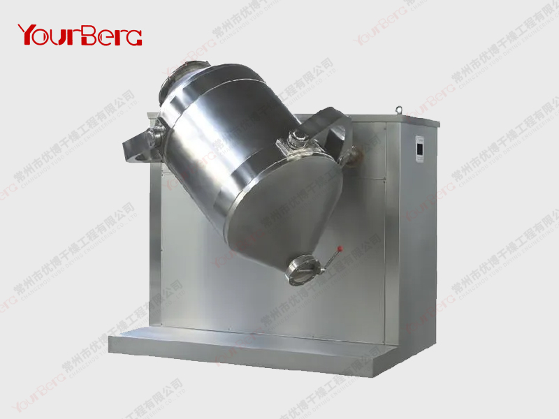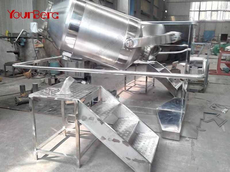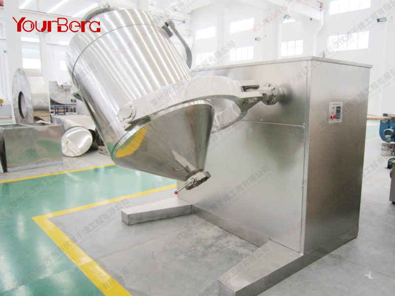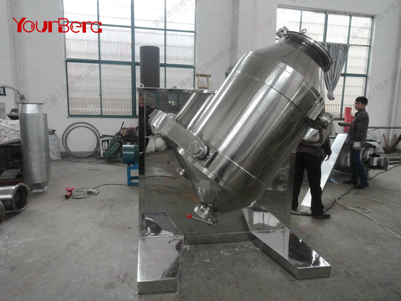 該機在運行中,由于混合桶體具有多方向運轉(zhuǎn)動作,使各種物料在混合過程中加速了流動和擴散作用,同時避免了一般混合機因離心力作用所產(chǎn)生的物料比重偏析和積聚現(xiàn)象,混合無死角,能有效確?;旌衔锪系募哑焚|(zhì)。