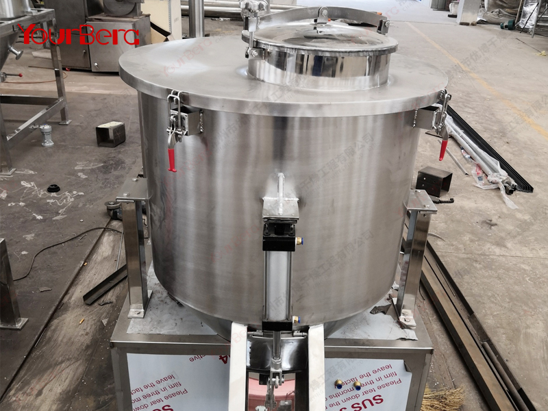 2、混合機(jī)在工作中由底部混合漿把物料源源不斷向上推送,再經(jīng)中部切割刀切割分解,在混料桶內(nèi)反復(fù)推送切割混合,從而快速高效均勻混合的目的。本機(jī)在以往的技術(shù)基礎(chǔ)上加以改進(jìn),上蓋用不銹鋼板制作,使上蓋打開幅度大,便于加料和清洗,圓封頭和混合桶連接處用硅橡膠密封條密封可有效防止物料在混合中泄漏。上蓋開啟時(shí)可用支撐桿支撐固定,支撐桿使用方便易于操作。
