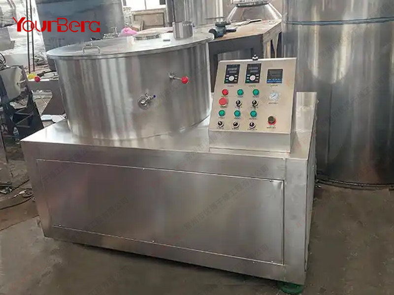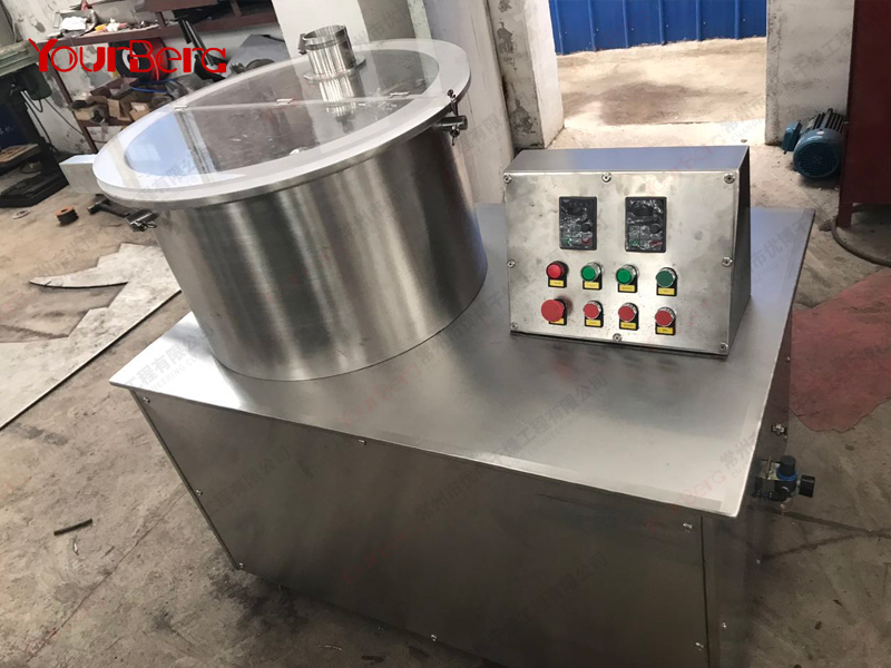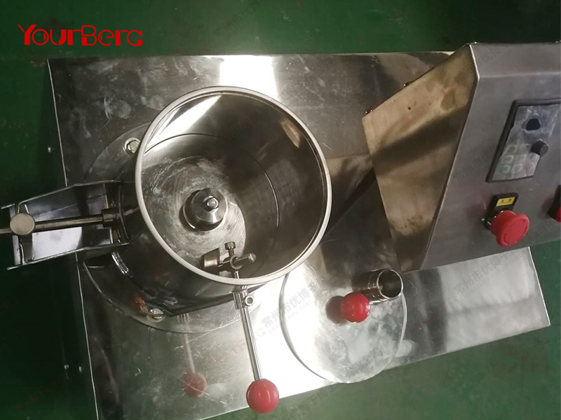 本機(jī)是通過設(shè)置旋轉(zhuǎn)離心盤、鼓風(fēng)機(jī)、氣動(dòng)噴槍,將濕顆粒制成美麗的球丸。將前道工序做成的濕顆粒投入旋轉(zhuǎn)離心盤內(nèi),啟動(dòng)鼓風(fēng)機(jī)后再將旋轉(zhuǎn)離心盤啟動(dòng),使?jié)耦w粒受到環(huán)隙空氣浮力、旋轉(zhuǎn)離心力、自身重力作用,呈環(huán)周繩股狀運(yùn)動(dòng),從而形成真球度極高的球丸。